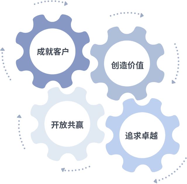 成就客户是一切决策的出发点,创造价值是衡量所有工作的标准,追求卓越是KY开元做事做人的态度,开放共赢是KY开元的格局也是最终的结果。价值观的齿轮环环相扣,推动着组织里的每个人不断向前。